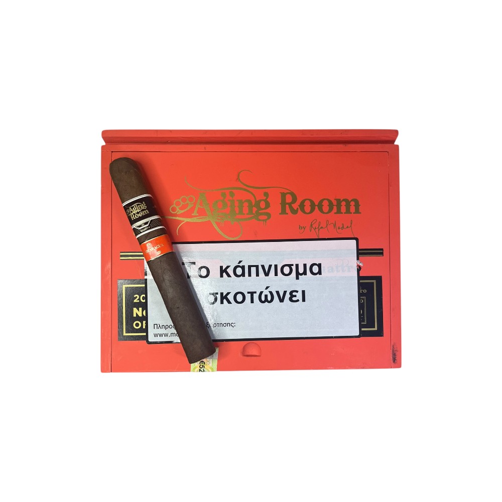 Aging Room ένα κομψό και εμβληματικό Robusto με χαρακτηριστικά που δηλώνουν την απολαυστική παράδοση και την δεξιοτεχνία της Νικαράγουας. Είναι μελετημένα και άρτια παλαιωμένο, φτιαγμένο αποκλειστικά και μόνο στο χέρι, έχει μεσαίο προς πλήρες σώμα και τα αρώματα του προσφέρουν πλούσιες εντάσεις. Καβουρδισμενους ξηρούς καρπούς, λευκό πιπέρι, μπαχαρικά και γήινες νότες καφέ espresso ενσωματώνονται άψογα σε ένα γλυκό wrapper απογειώνοντας το τελικό αποτέλεσμα!