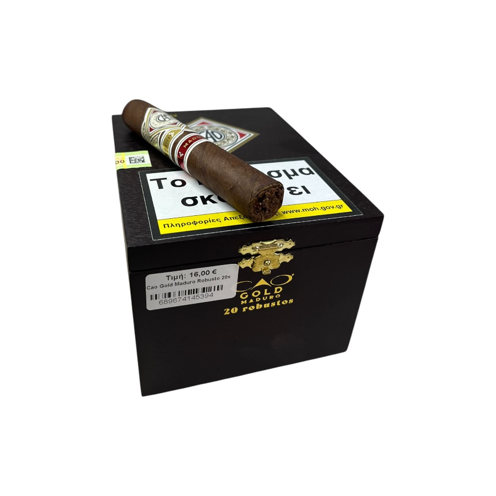 Με ανεβασμένο το πήχη της ποιότητας εμφανίζεται το Cao Gold Maduro, με ένα πλούσιο ελαιώδες Brazillian Maduro Wrapper. Είναι ένα πούρο που ξεχωρίζει με την ένταση του και χαρακτηρίζεται ιδιαίτερα προσφέροντας μια απολαυστική εμπειρία! Με εκλεκτά χαρμάνια απο την Nicaragua θα σας προσφέρει αρώματα απο καβουρδισμένο καφέ, και μια απαλή βουτυρένια και κρεμώδη νότα που θα σας ταξιδέψει σε απολαυστικές περιηγήσεις!