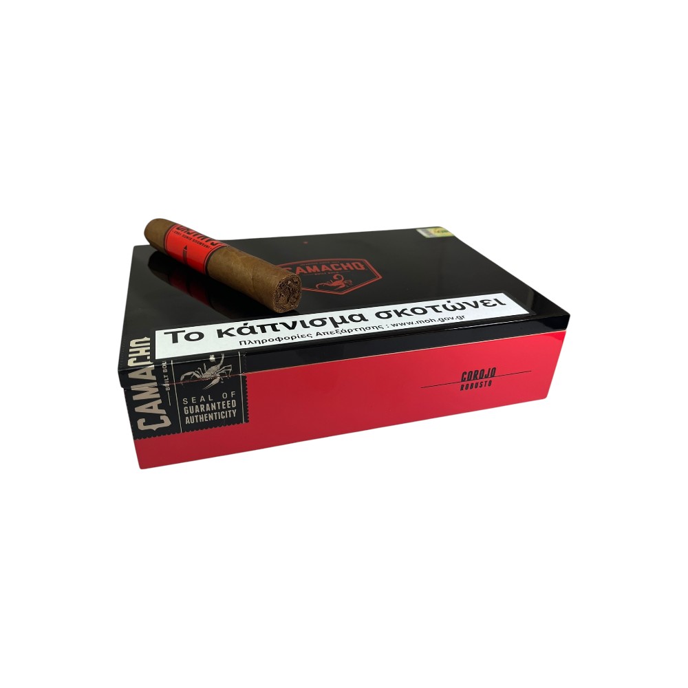 Αρώματα: Η σειρά Camacho Corojo προσφέρει ένα έντονο και αυθεντικό προφίλ, με πλούσιες ξυλώδης και γήινες νότες που συμπληρώνονται από αποχρώσεις μαύρου πιπεριού, κακάο και δέρματος. Η ένταση ισορροπείται με μια διακριτική γλυκύτητα και μια μακρά, γεμάτη επίγευση που αφήνει αίσθηση δύναμης και έντονου χαρακτήρα.