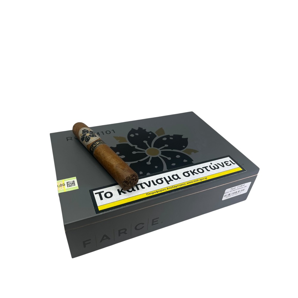 • Η σειρά Room101 Farce Original είναι μια τολμηρή σείρα premium χειροποίητων πούρων, που αντικατοπτρίζει την avant-garde αισθητική και τη φιλοσοφία του brand. Συνδυάζει εκλεκτά επιλεγμένα καπνά από πέντε διαφορετικές χώρες — Εκουαδόρ, Ινδονησία, Δομινικανή Δημοκρατία, Νικαράγουα και τις Ηνωμένες Πολιτείες.