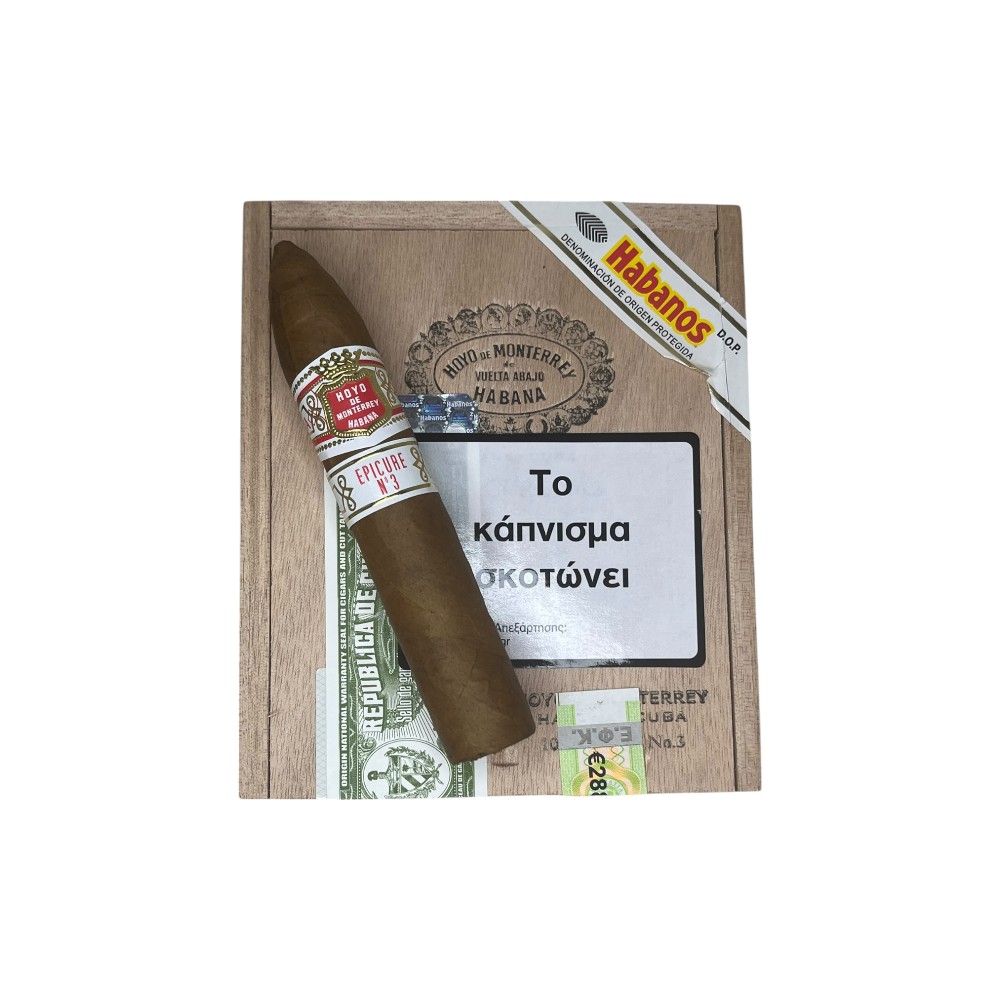 Αυτό το Petit Belicoso είναι ένα σημείο αναφοράς για τους λάτρεις των Habanos, αυτή η Vitola ξεχωρίζει για το μεγάλο της δαχτυλίδι στην σειρά Epicure. Πολλοί λάτρεις των πούρων έχουν ξεκινήσει την εξερεύνηση στα Κουβανέζικα πούρα με ένα Epicure No3, η επιλογή ενός λουλουδάτου σώματος με νότες απο πιπερόριζα προσδίδουν μια κομψή επίγευση σε συνδυασμό με τις γήινες νότες που διαπερνούν απαλά τα φύλλα του τυλίγματος του.