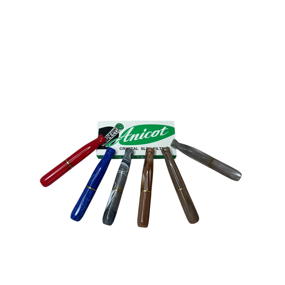 Πιπάκι τσιγάρου ελληνικής παραγωγής PIPEX για ultra slim σε διάφορα τυχαία χρώματα βάση διαθεσιμότητας με 6.4cm μήκος και μαζί δώρο ένα κουτί ανταλλακτικών φίλτρων ANICOT CRYSTAL SLIM που εμπεριέχει 10 τεμάχια.