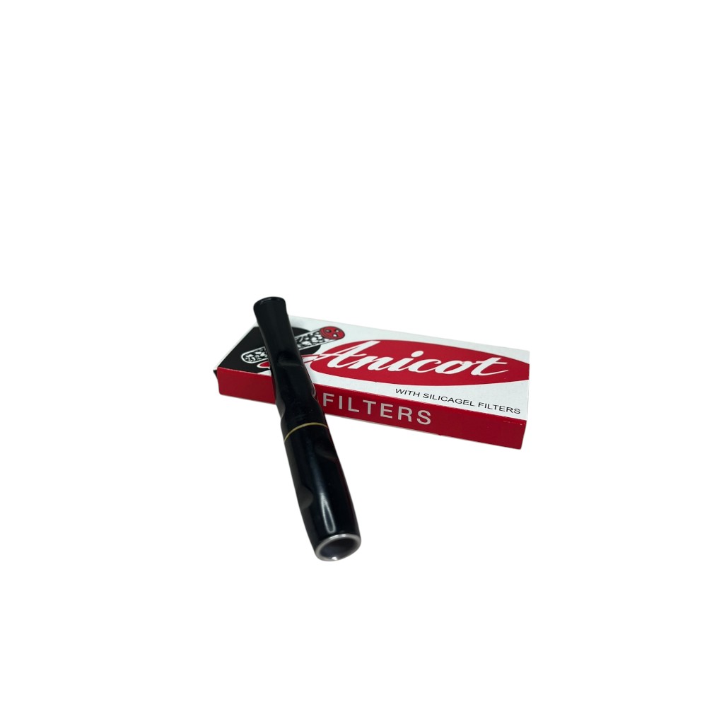 Πιπάκι τσιγάρου ελληνικής παραγωγής PIPEX για κανονικό τσιγάρο σε metallic black απόχρωση με 9cm μήκος και μαζί δώρο ένα κουτί ανταλλακτικών φίλτρων ANICOT CRYSTAL REGULAR που εμπεριέχει 10 τεμάχια.