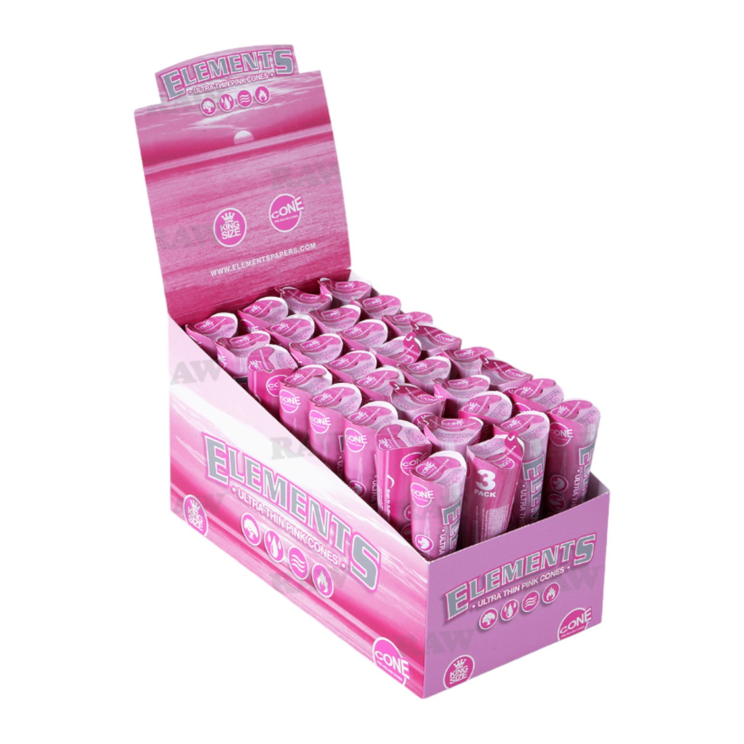 Η συσκευασία αυτή περιέχει 3 έτοιμους προτυλιγμένους κώνους ELEMENTS® ροζ μεγάλο μέγεθος με ενσωματωμένη τζιβάνα στην οποία αναγράφεται το λογότυπο της ELEMENTS®.