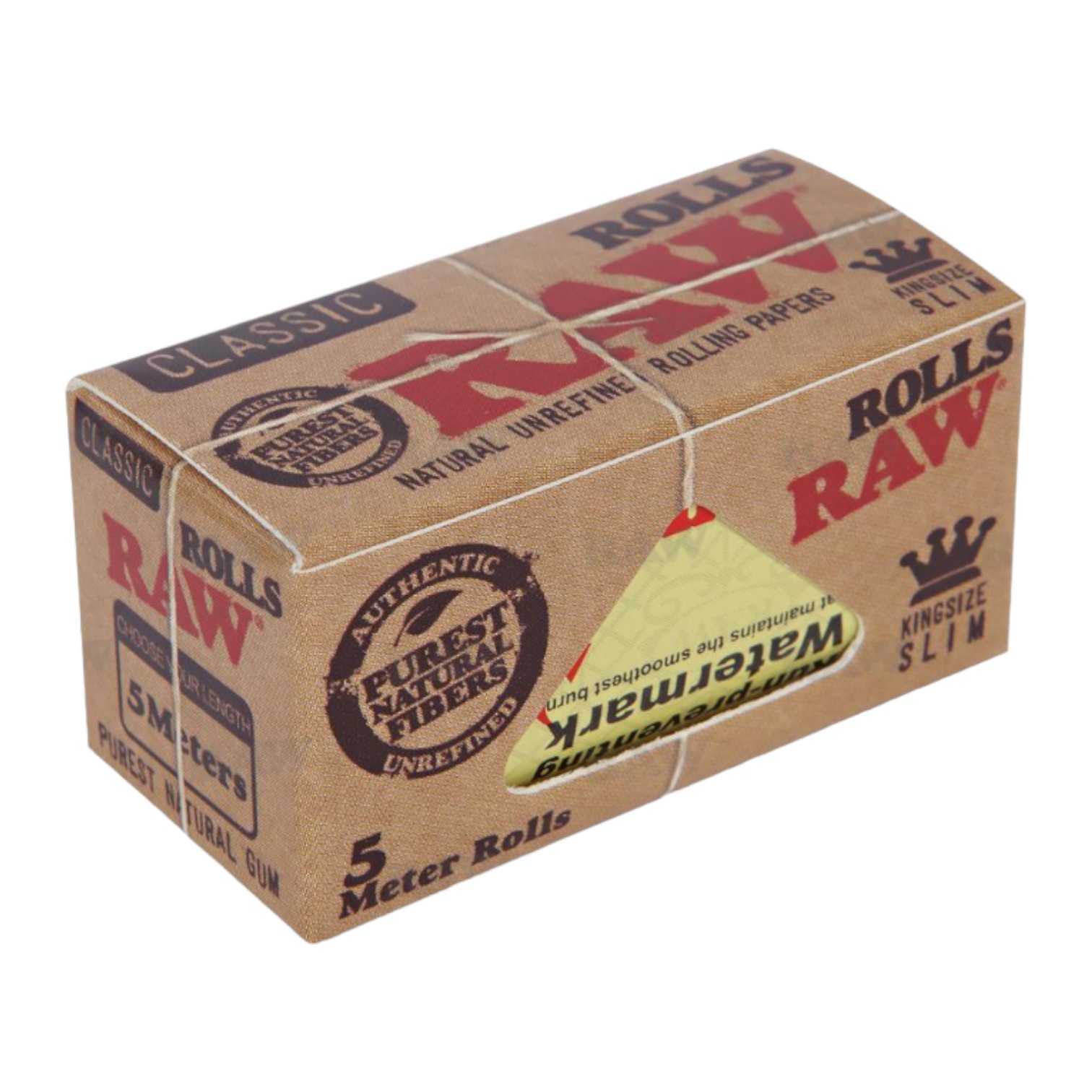 Τα RAW® ρολά είναι η τέλεια λύση για τους καπνιστές που θέλουν την ελευθερία της επιλογής στο μέγεθος (μήκος) του αγαπημένου τους τσιγαρόχαρτου. Το RAW® κλασικό KingSize Slim (11/4) ρολό, περιέχει 5 μέτρα από το φυσικό ακατέργαστο, αλεύκαντο τσιγαρόχαρτο RAW®, άκοπο, ώστε να σου δίνει την δυνατότητα να στρίψεις όσο θέλεις. Τα τσιγαρόχαρτα RAW® κατασκευάζονται από φυσικές, φυτικές πρώτες ύλες, με μηδενική προσθήκη πρόσθετων καύσης.