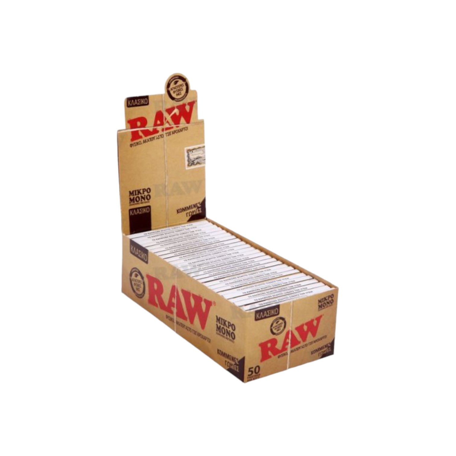 Τα RAW® είναι ακατέργαστα, αλεύκαντα τσιγαρόχαρτα που περιέχουν ένα μείγμα από μη χλωριωμένες ίνες και τελειώνουν με μια φυσική κόλλα, έτσι ώστε να συμβάλει στην μειωμένη ταχύτητα καύσεως του τσιγαρόχαρτου.