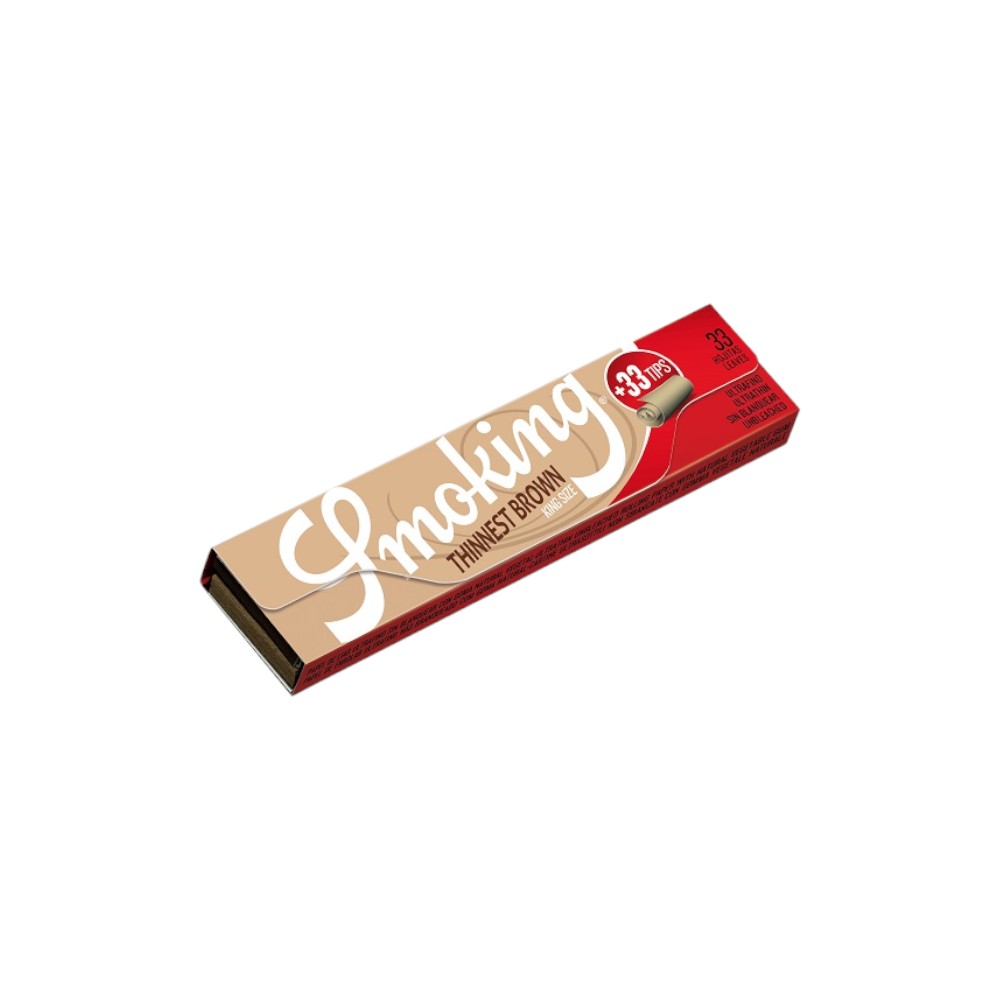 Χαρτάκια Smoking King size Thinnest Brown (Καφέ) αλεύκαντα με φυσική κόλλα 33 φύλλων + 33 Tips 10g/m2 24/d