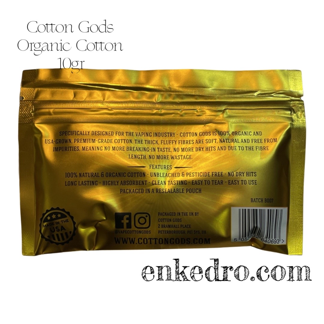 Το Cotton Gods είναι ένα βαμβάκι υψηλής ποιότητας για να συντροφεύσει όλους σας τους επισκευάσιμους ατμοποιητές. Κατασκευασμένο από 100% οργανικό βαμβάκι προσφέρει εξαιρετική απόδοση γεύσης από την πρώτη στιγμή. Παράγεται στην Αμερική και υπόσχεται μοναδική απόδοση, ενώ με την μοναδική του σύνθεση και την μεγάλη απορροφητική του ικανότητα διασφαλίζει την αποφυγή των Dry Hits. Το Cotton Gods είναι ειδικά κατασκευασμένο για να αντέχει ακόμη και σε πολύ υψηλές θερμοκρασίες(Sub-Ohm Vaping).