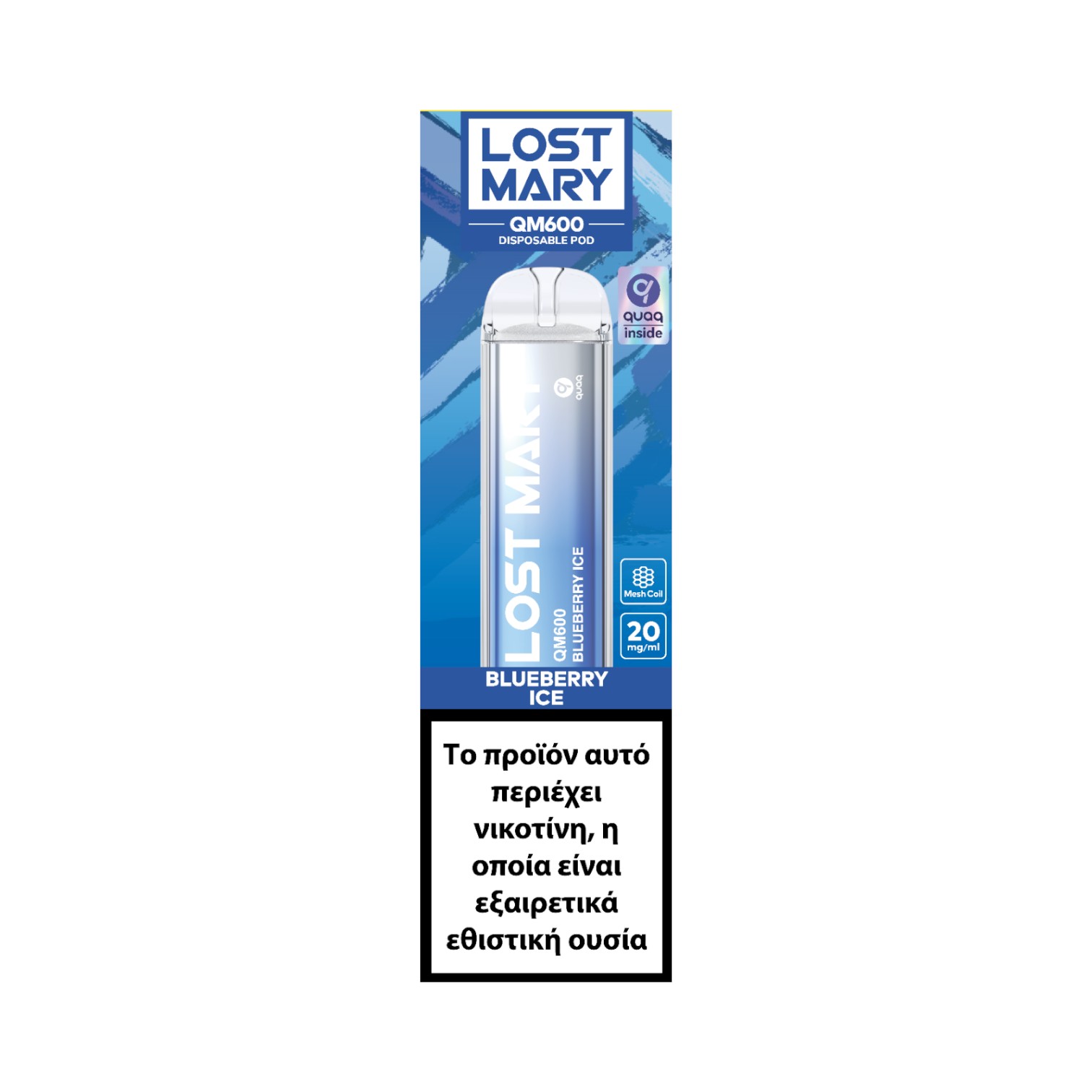 Το Lost Mary είναι ένα προγεμισμένο ηλεκτρονικό τσιγάρο μίας χρήσης, που θα βρείτε σε ποικιλία απολαυστικών γεύσεων. Είναι εξοπλισμένο με ενσωματωμένη μπαταρία 550 mAh και δεν απαιτεί φόρτιση ή επαναγέμιση υγρού. Πρόκειται για ένα πανεύκολο, κομψό και ελαφρύ ηλεκτρονικό τσιγάρο, το οποίο μπορείτε να ατμίσετε κατευθείαν από τη συσκευασία του.