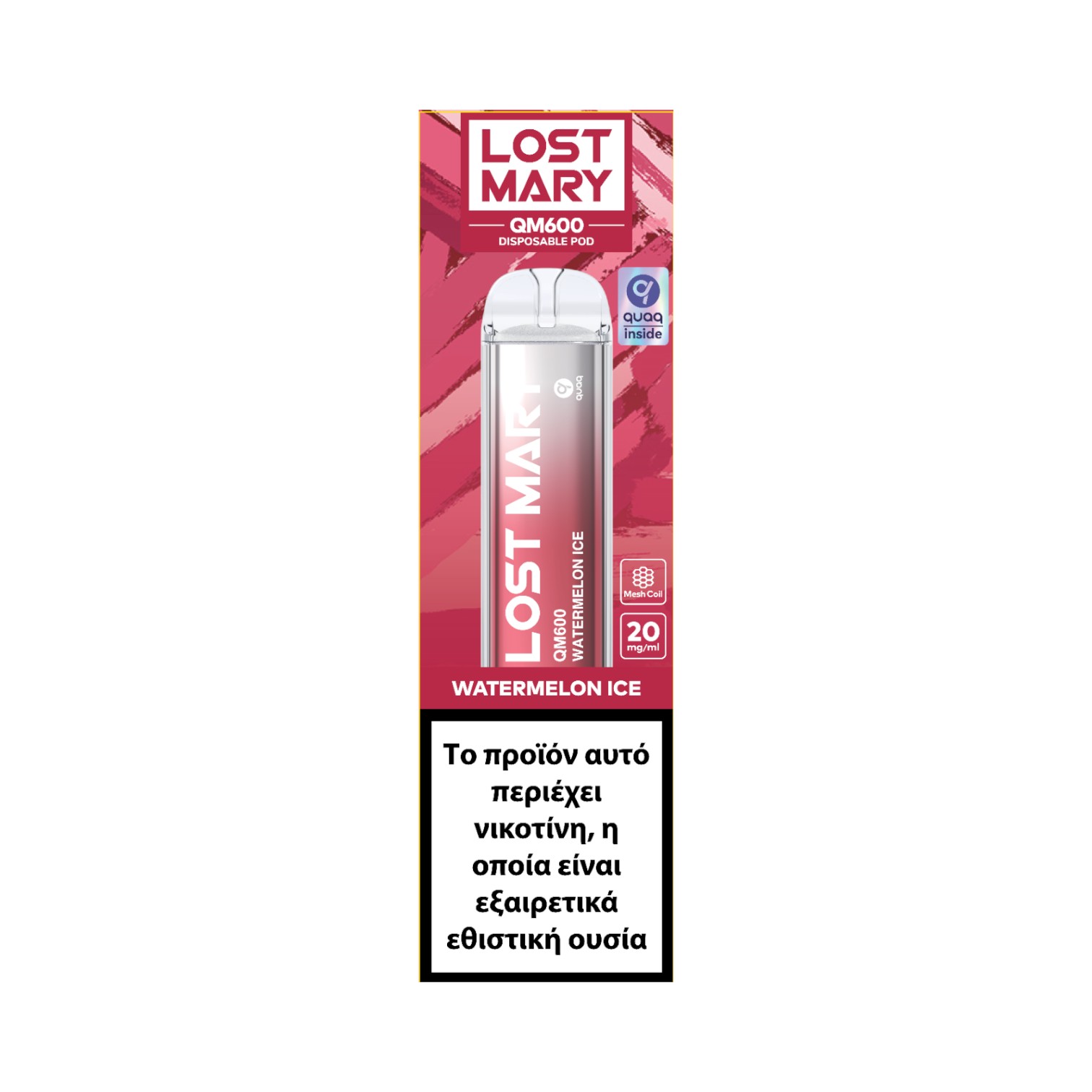 Το Lost Mary είναι ένα προγεμισμένο ηλεκτρονικό τσιγάρο μίας χρήσης, που θα βρείτε σε ποικιλία απολαυστικών γεύσεων. Είναι εξοπλισμένο με ενσωματωμένη μπαταρία 550 mAh και δεν απαιτεί φόρτιση ή επαναγέμιση υγρού. Πρόκειται για ένα πανεύκολο, κομψό και ελαφρύ ηλεκτρονικό τσιγάρο, το οποίο μπορείτε να ατμίσετε κατευθείαν από τη συσκευασία του.