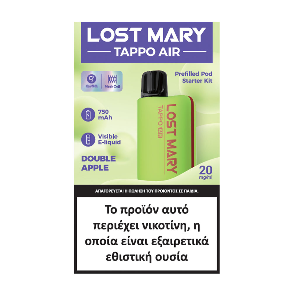 Lost Mary Tappo Air Starter Kit Double Apple 2ml Κόκκινο και πράσινο μήλο! Γλυκός συνδυασμός που συναρπάζει!