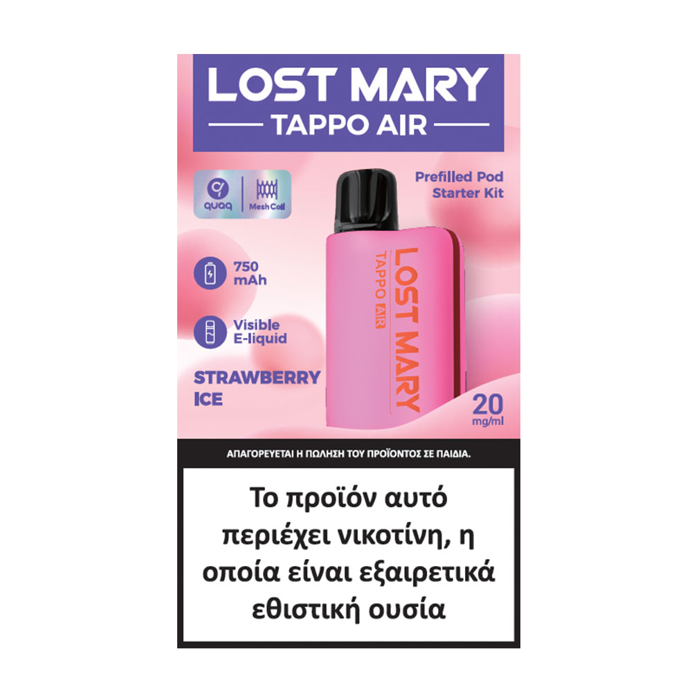 Νέο επαναφορτιζόμενο τσιγάρο Lost Mary TAPPO Air με προγεμισμένη κάψουλα που προσφέρει μια δροσερή και φρουτώδη εμπειρία ατμίσματος. Διατίθεται σε 20mg νικοτίνης.
