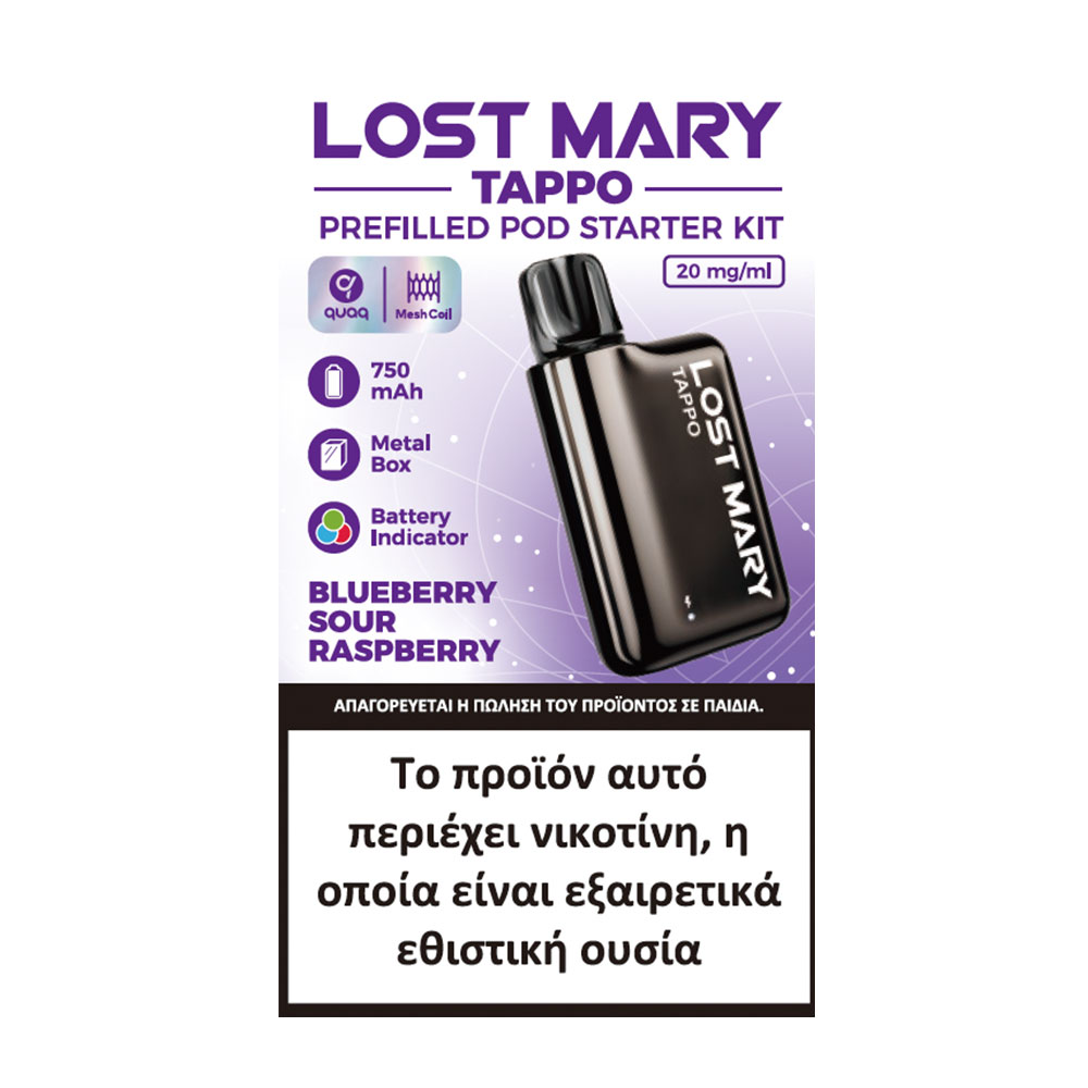 Lost Mary Tappo Metal Starter Kit Blueberry Sour Raspberry 2ml Ακαταμάχητη γεύση απο γλυκά μούρα & βατόμουρα!