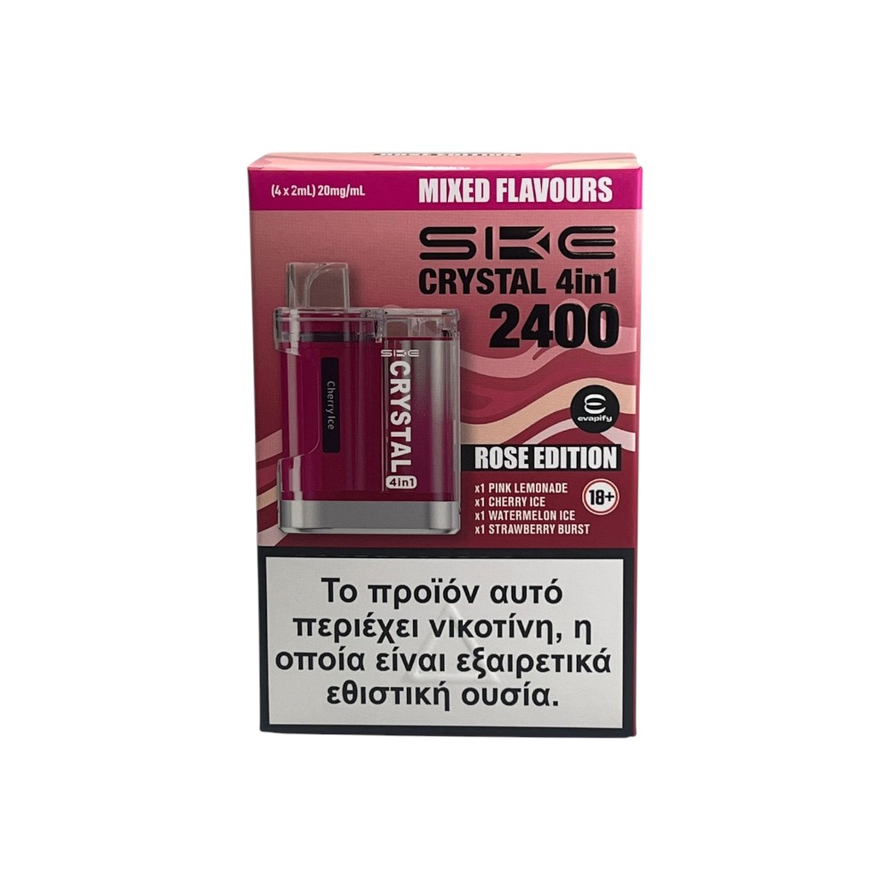 Το SKE Crystal Rose Starter Kit περιέχει 4 ανταλλακτικές κάψουλες με έως 600 τζούρες η κάθε μια που προσφέρουν μια μοναδική απολαυστική εμπειρία και απόλαυση κατα την διάρκεια της χρήσης. Οι κάψουλες είναι φτιαγμένες να προσφέρουν την μέγιστη απόδοση χρήσης και μια γευστική εμπειρία με θεαματικά αποτελέσματα στην απόλαυση προσφέροντας συνολικά έως και 2400 τζούρες! Η συσκευή είναι εξοπλισμένη με μια μπαταρία 950mAh, που μπορεί να προσφέρει αρκετά μεγάλη διάρκεια χρήσης κατα την διάρκεια της ημέρας, αλλά επίσης αν χρειαστεί η θύρα USB-C θα προσφέρει άμεση φόρτιση για να συνεχίσετε την απόλαυση σας. Κάθε πακέτο Rose Edition περιέχει τις παρακάτω γεύσεις: