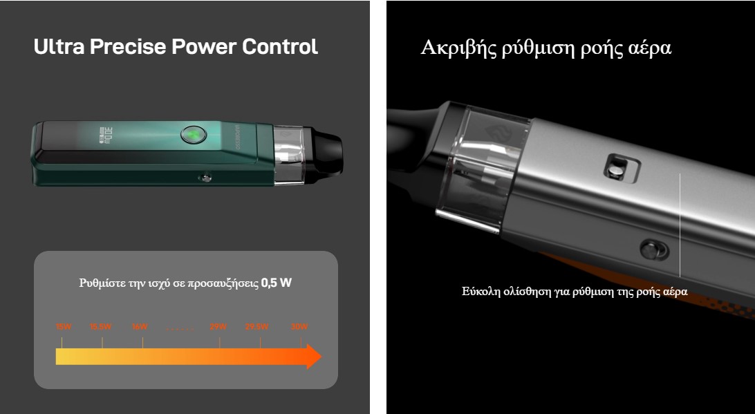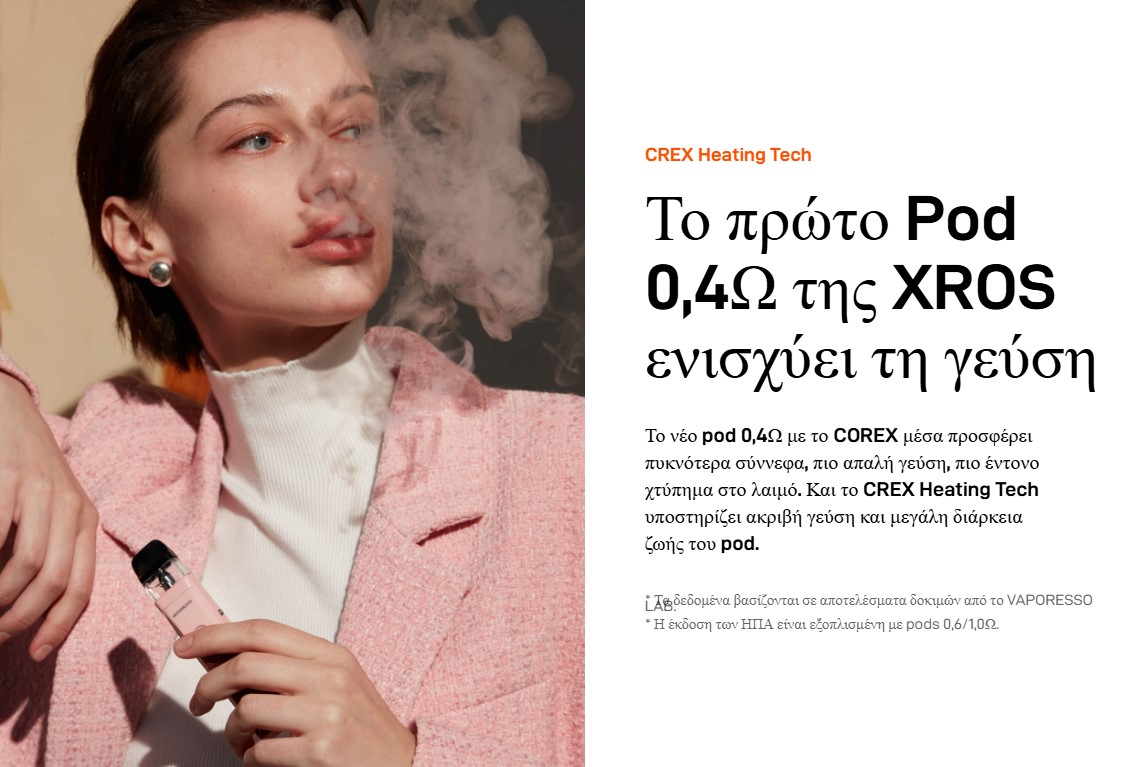 Το XROS PRO διαθέτει το νέο XROS 0,4Ω MESH pod με ρυθμιζόμενη ισχύ έως 30 W, προσφέροντας εμπειρία RDL Pod.