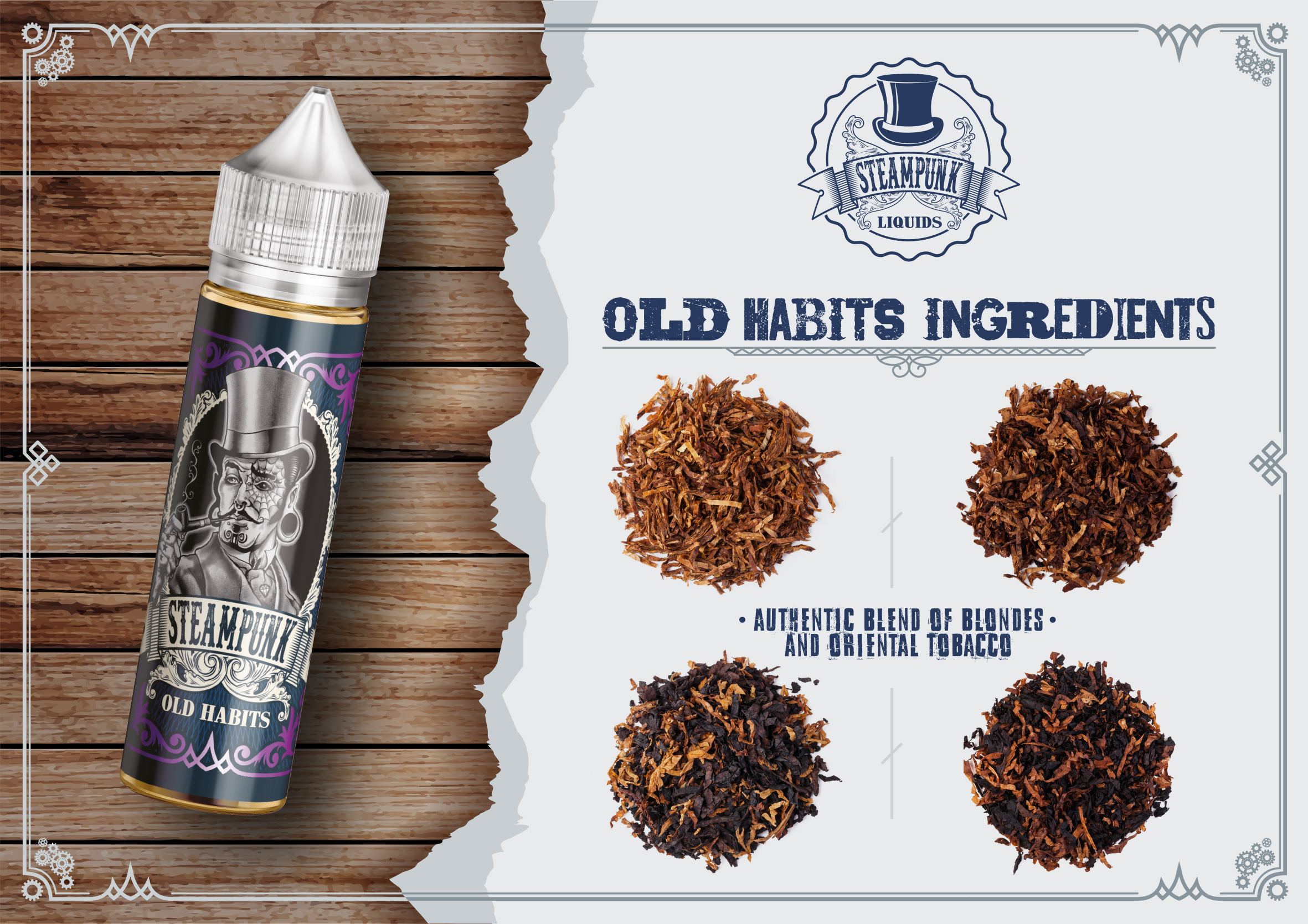 Σαν το παλιό καλό κρασί που όσα χρόνια και αν περάσουν δεν χάνει ποτέ την αξία του. Ο ‘νέος’ θα το ξεχωρίσει για την σπιρτάδα και τον αδρή χαρακτήρα του, ο ‘παλιός’ θα εκτιμήσει την γνήσια καπνική γεύση που εσωκλείει… Old Habits, ένα αυθεντικό χαρμάνι ξανθών και oriental καπνών που δεν χρίζει καμία ανάγκη γλυκαντικών για να ενθουσιάσει.